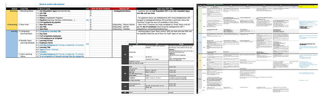 Initially, there were several areas of ambiguity that our team was assigned to explore. We interviewed key individuals from the customer's team and learned more about the current HR workflow, overall pain points, and performance expectations. After accomplishing this, we designed a Mural board that will effectively present crucial needs and general pain points as well as highlight key components of the project.