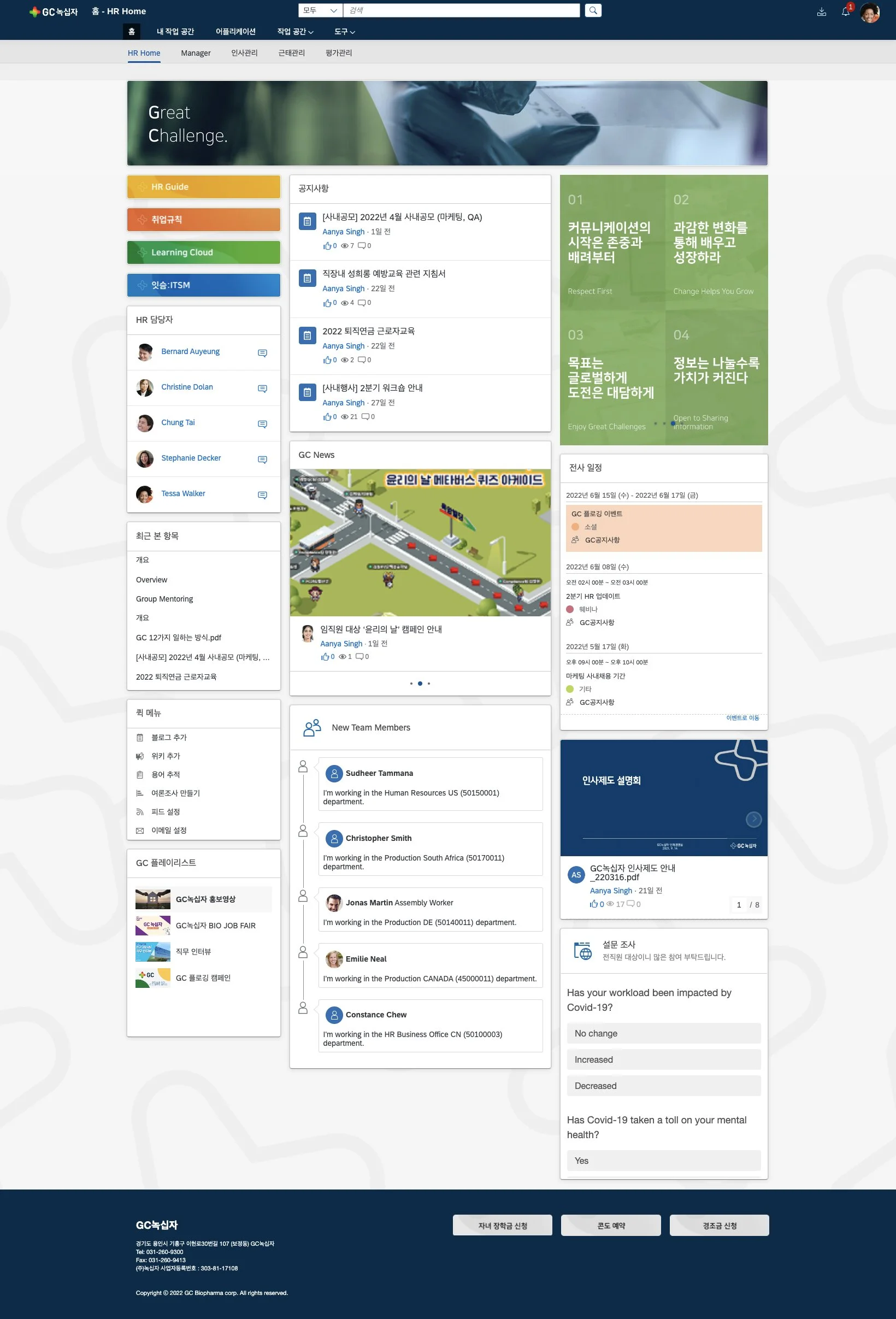 With its continuing growth globally, GC Biopharma selected SAP SuccessFactors as an integrated solution for their HR transformation. GC Biopharma collaborated with SAP to design and implement the HR Portal with SAP Work Zone as its main entry point for employees to access the corporate HR system.