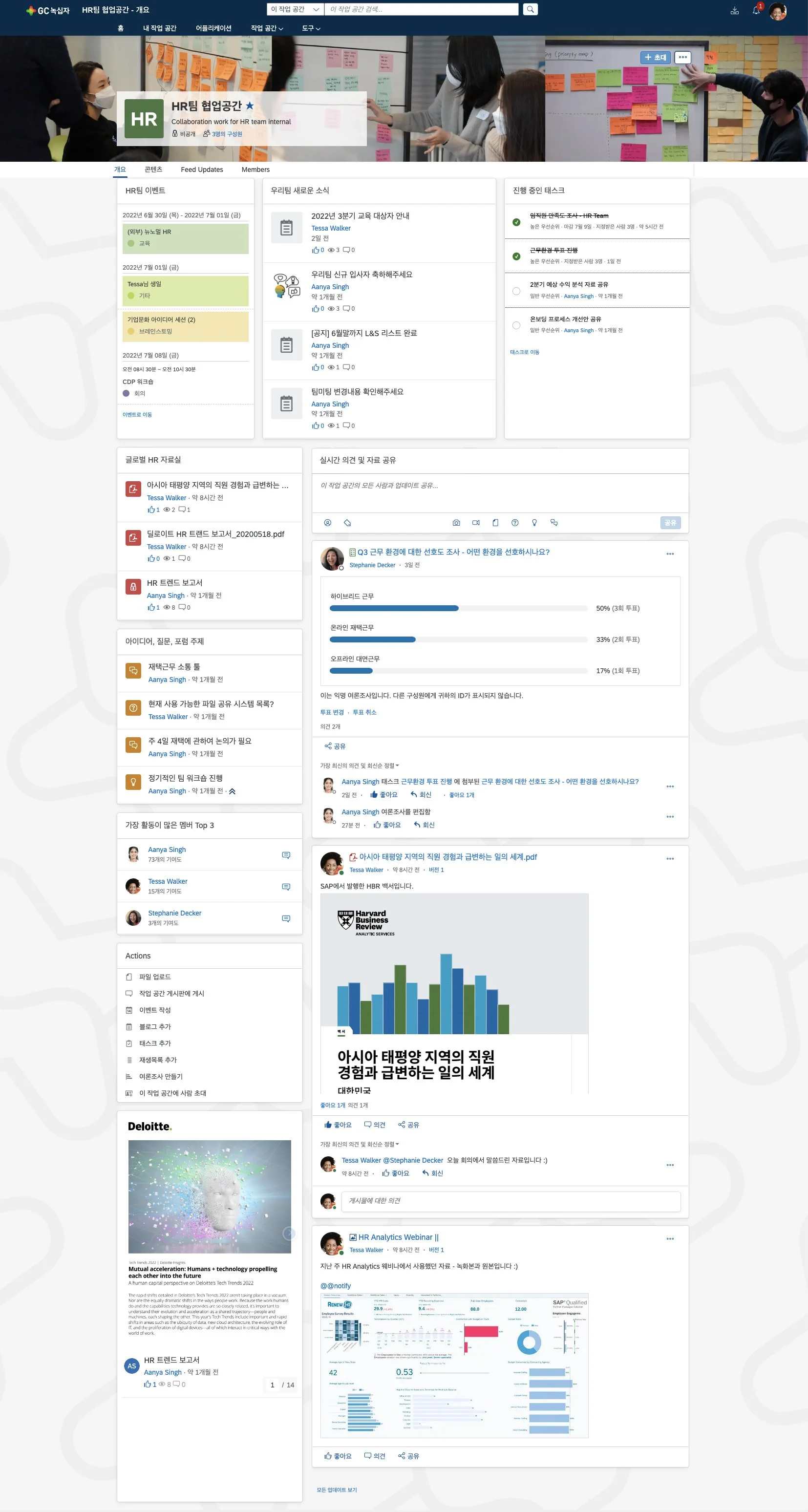 Real-time sharing and communicating ideas with HR events, team news, ongoing tasks or projects, global HR resource archiving, authorizing configuration of feeds, tagging members, and more.